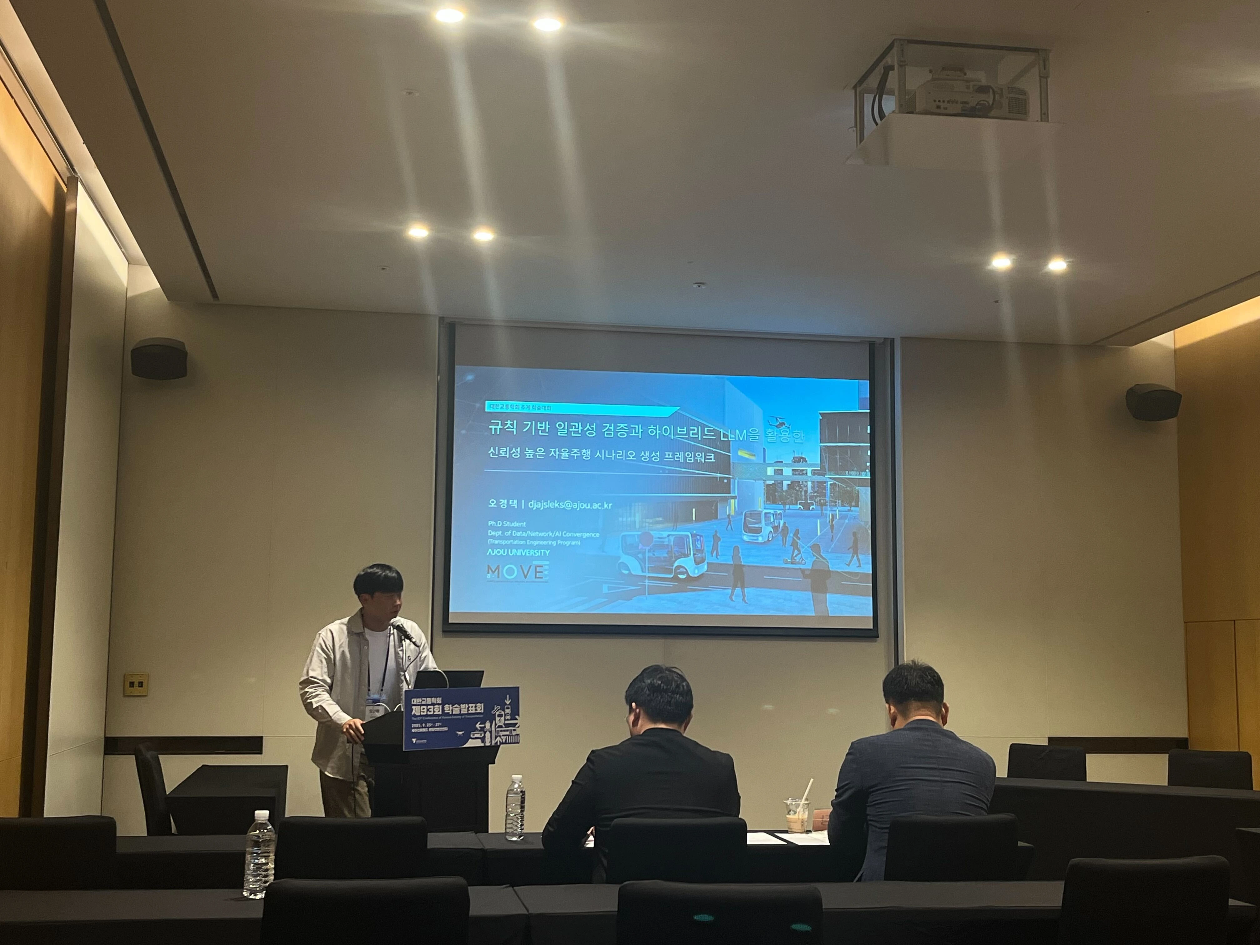 Won the Best Paper Award at the 2023 Autumn ITS Conference in Jeju, Korea, Joonho Park, M.S. student - "Verification of Critical Situations for Accident Occurrence by Traffic Crash Contributing Factors"